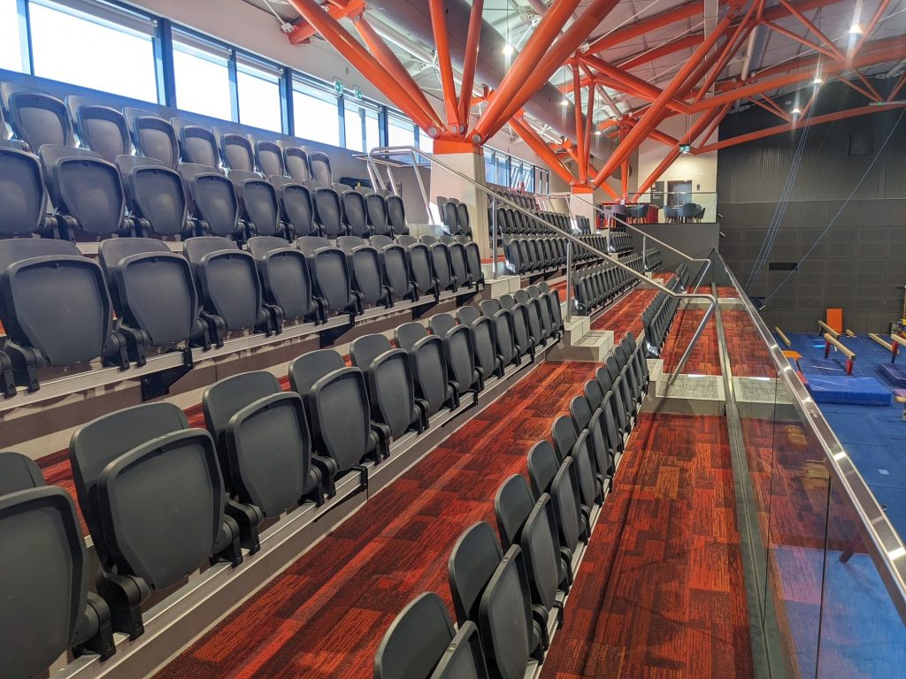 הכיסאות מותקנים על קורת אלומיניום הרתומה למבנה, ברתום לשלח או לרום מדרגת הבטון.