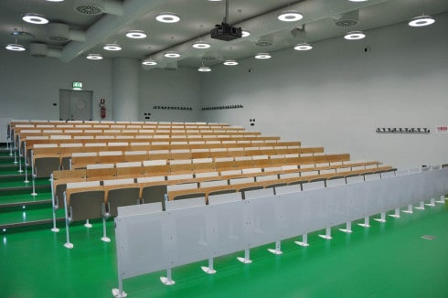 - חסכנית מאוד במקום: עומק שורה יכול לנוע בן 85-90 ס”מ במקום לפחות 110 ס”מ ברחף. רוחב עמדת סטודנט 52-55 ס”מ בלבד.