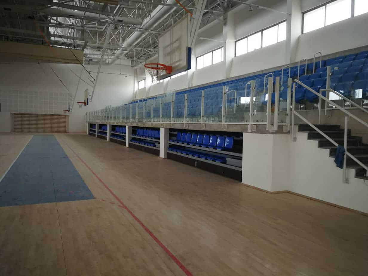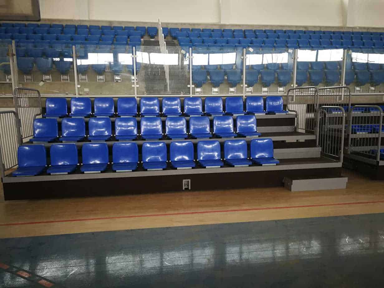 - טריבונה תוצרת TP Sport (ספרד) דגם GATEL 140. הפעלה ידנית ע”י ידית ייעודית. רצפה עמידה Anti-slip. מעקות מתפרקים. כיסאות יושבים ישירות על המדרגה. דגם כיסאות S-96 אפשרות לבחירה ממבחר צבעים.